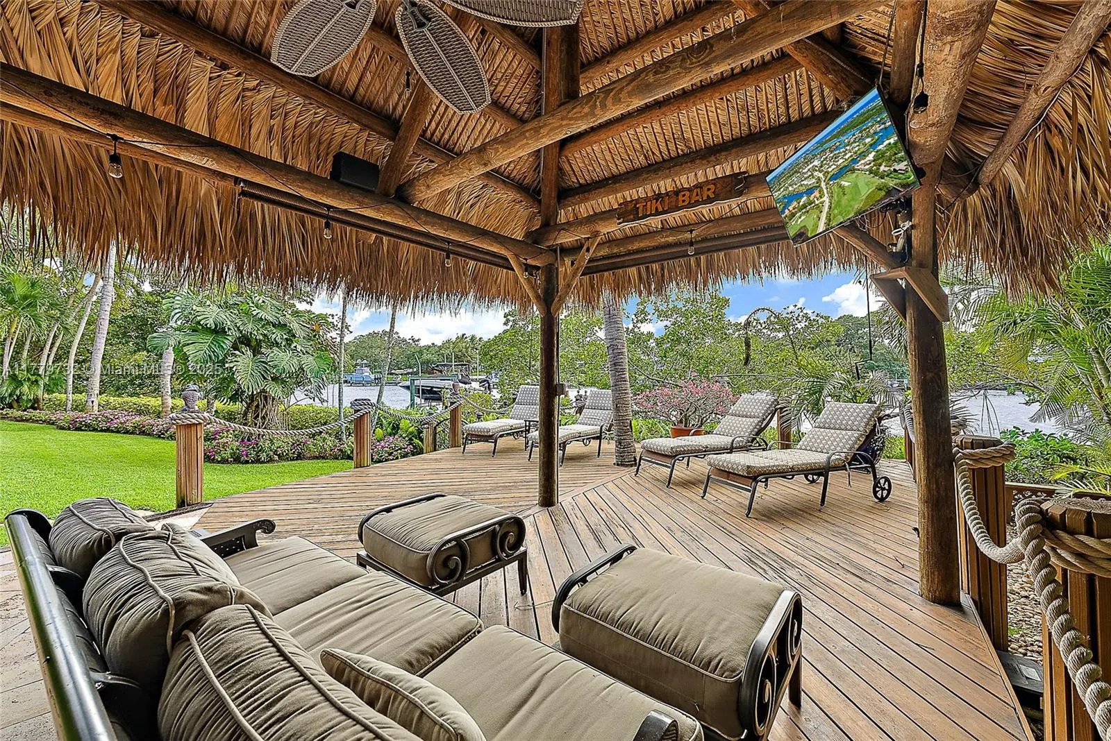 Welcome to your dream home! This beautifully updated property boasts clean lines and modern finishes throughout, creating a light and bright atmosphere that you'll love coming home to. Situated on a prime river location with ocean access, this house offers the best of the Florida Lifestyle. Backyard with Tiki Bar is ideal for entertaining, complete with a bar and fully equipped summer kitchen. Large windows and open spaces ensure plenty of natural light throughout the home. The kitchen is a chef's delight, featuring custom cabinetry, high-end appliances and elegant countertops. This is a true gem and a boaters paradise with a private dock.