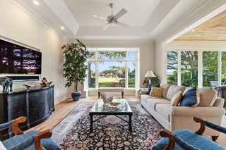 Sleek with an open floor plan, this amazing Prestwick model offers the best of everything. Clean lines and light-filled rooms make this home one of a kind. Located on one of the most highly sought after cul-de-sacs in the community, this 3 bedroom, 3 bath home has it all. Oversized sliders capture the lovely views of the 15th hole on the Village Course. The primary bedroom is large, and the spa-like bath makes one feel like they are truly on vacation. Two guest bedrooms with ensuite baths are perfect for entertaining family and friends. If you would like to write a note or want to browse the internet, the light and bright office located adjacent to the kitchen is just the place to do it. A two-car garage with golf cart storage completes this picture.