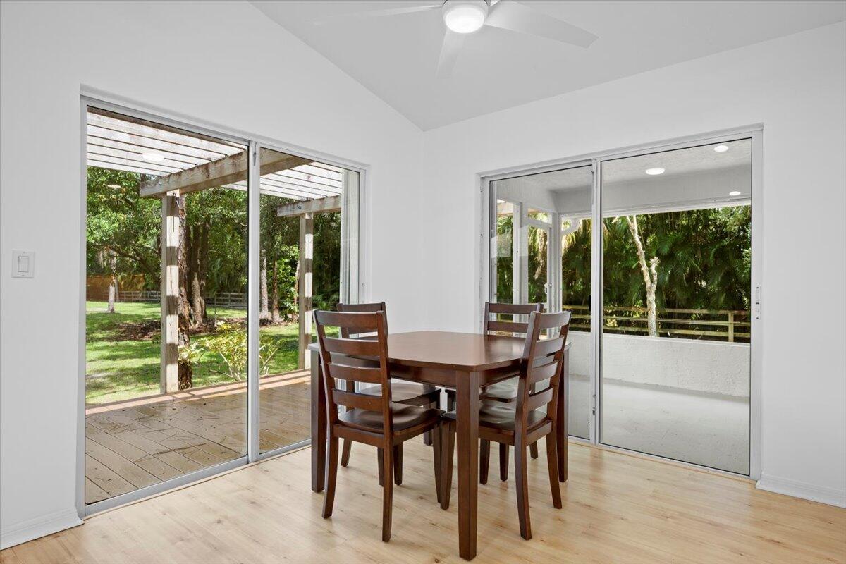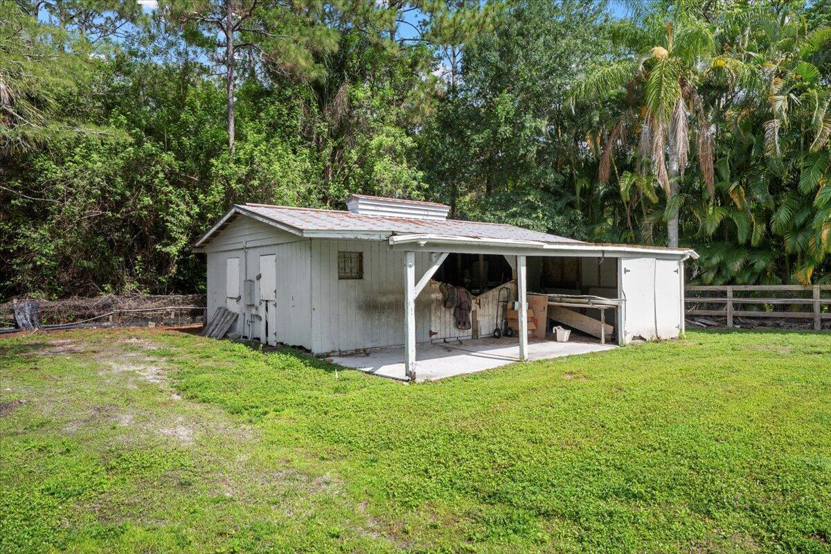 Rare opportunity to own TWO homes on 2 fully fenced acres in the desirable equestrian community of Jupiter Farms. The main house offers 4 bedrooms and 2 fully updated bathrooms. The main house has brand new luxury flooring throughout as well as new kitchen cabinets, counters and all new kitchen appliances. Dual A/C system for added efficiency and comfort.Both the main house and the guest house received BRAND NEW ROOFS completed in February 2026! The 1270 sq foot adorable guest house features one bedroom, one bathroom, kitchen, living room as well as screened front and rear porches- and has a deck covered by a pergola!The property features a 2-car detached garage with workshop, carport, storage shed and a 2-stall barn (barn sold as-is) Don't miss out on this gem!